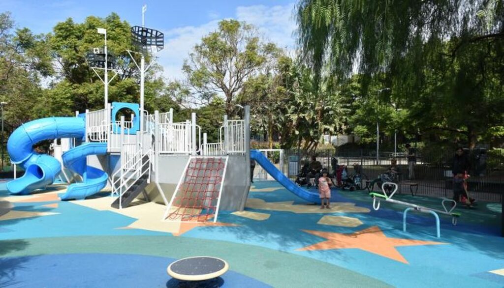 El patio de juegos de la Plaza Boedo, ubicada entre las calles Estados Unidos, Sánchez de Loria y Carlos Calvo, fue renovado con una temática patria, incorporando un mangrullo inspirado en el ARA General Belgrano, crucero de la Armada Argentina hundido el 2 de mayo de 1982 durante la guerra de Malvinas. El nuevo solado acompañó esta propuesta simbólica, junto con juegos periféricos y un piso de caucho alusivo. Además, se pintaron las paredes con pintura de tiza, permitiendo a los niños intervenirlas con colores, y se sumaron bancos de espera de madera sintética e hierro.