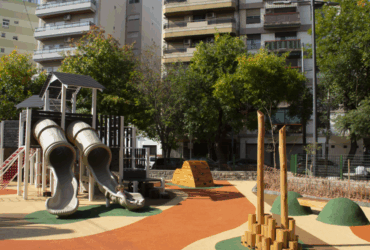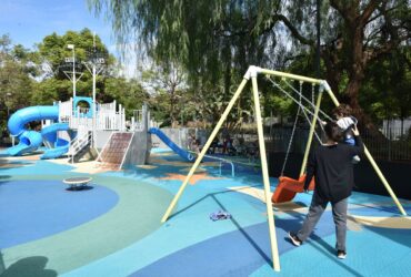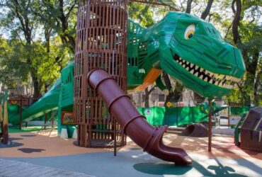 El patio de juegos del Parque Florentino Ameghino, ubicado en avenida Caseros ...